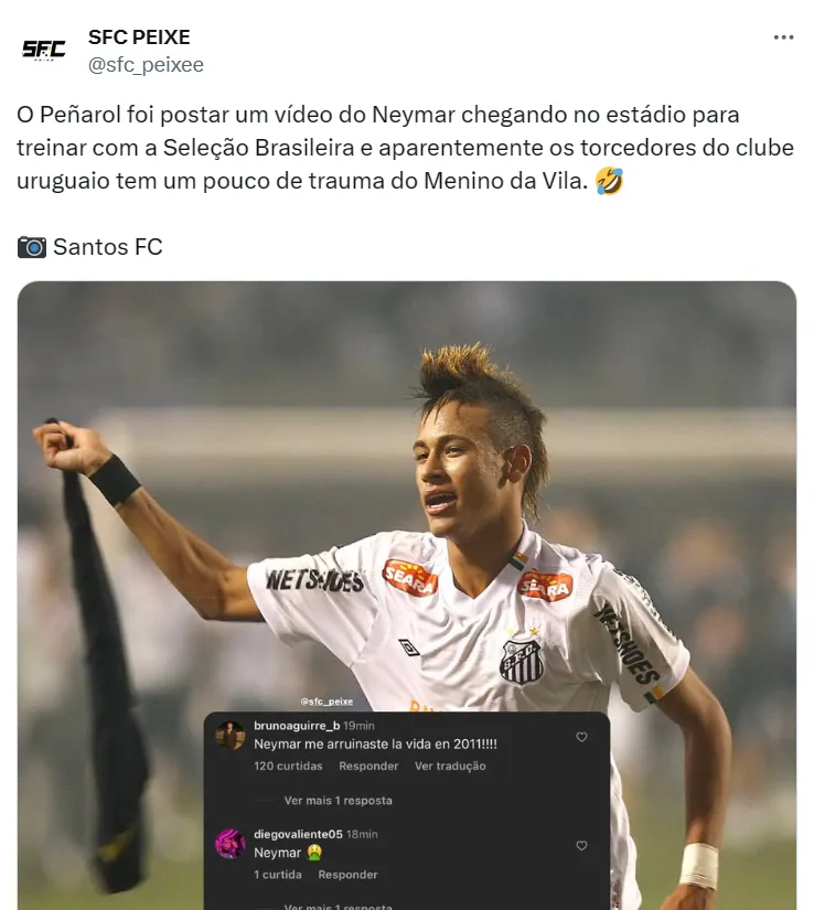 Repercutiu, virou resenha: Torcedores do Peñarol se REVOLTAM com 'visita' de Neymar e recordam derrota para o Santos