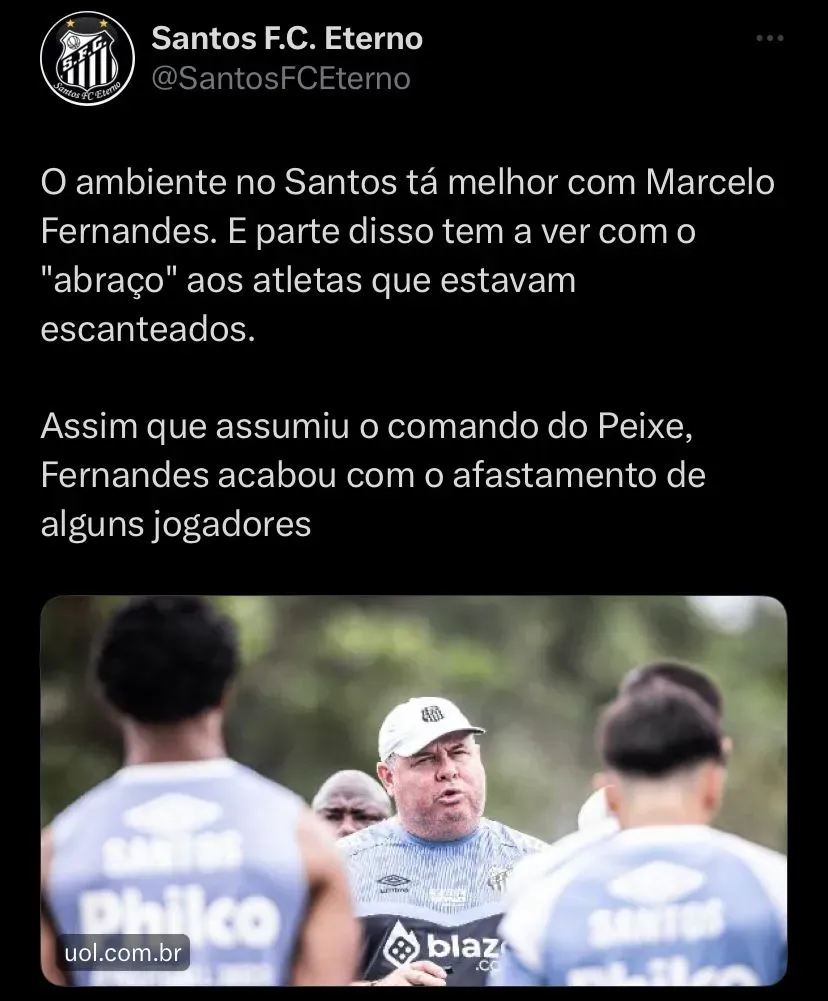 O Santos não vem fazendo uma boa campanha em 2023, o Peixe foi eliminado do Campeonato Paulista, Copa do Brasil e da Copa Sul-Americana e apenas restou a Série A do Campeonato Brasileiro para dar sequência na temporada. O clube paulista vem lutando contra o rebaixamento e após a saída do técnico Diego Aguirre, Marcelo Fernandes assumiu e vem dando conta do recado para manter o Santos na Série A.