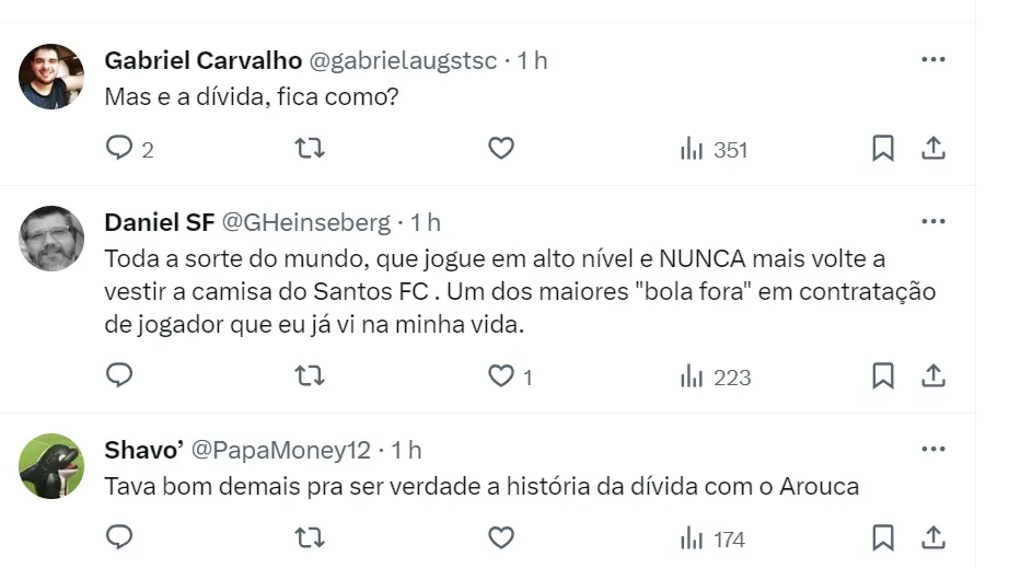 Ainda não se sabe quais as condições de empréstimo proposta pelo Estoril. Na última semana, o time português acertou o empréstimo do volante Vinícius Zanocelo, também do Santos, até o fim de 2024 com opção de compra.