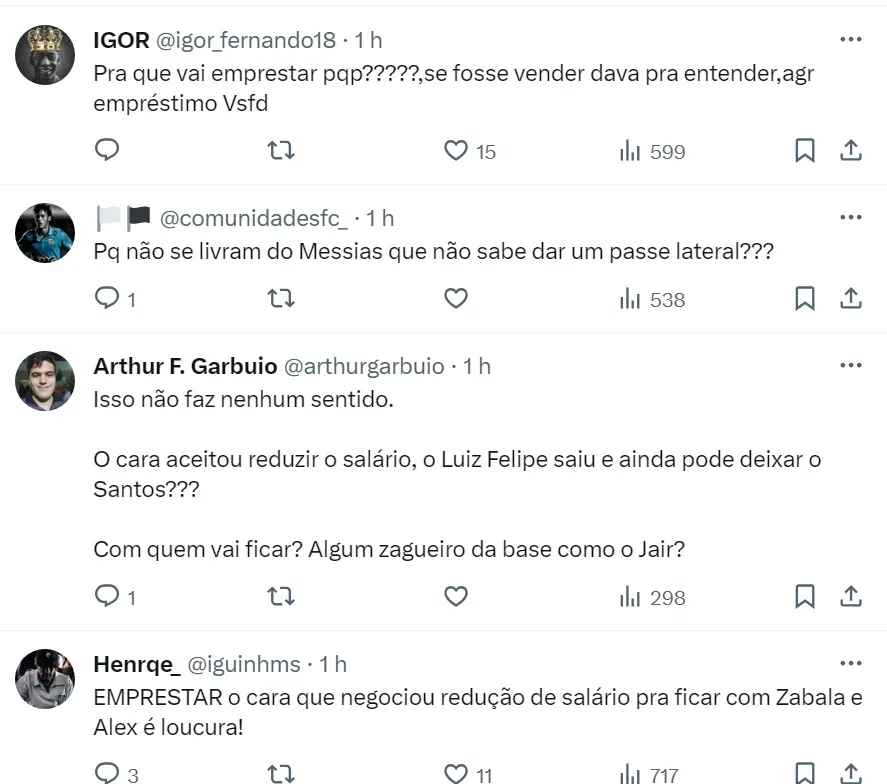 Reações dos santistas sobre Basso: