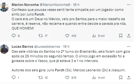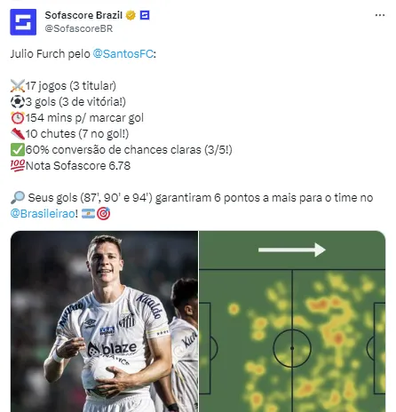 Furch já vem assumindo um protagonismo e foi peça-chave para três vitórias importantíssimas para o Peixe na Série A. Ele marcou os gols dos triunfos contra Grêmio, Bahia e Goiás. Um detalhe é que todos esses gols foram marcados nos finais das partidas e ajudaram muito o time.