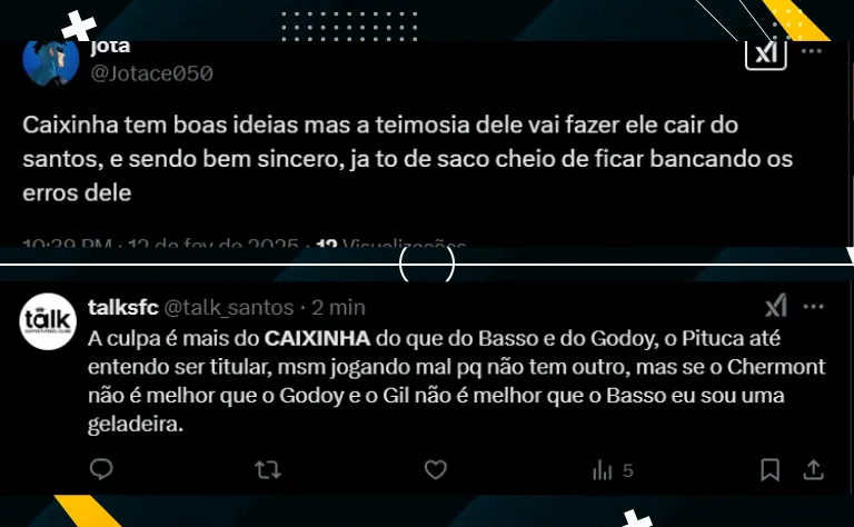 “Caixinha caí hoje, não tem como defender as escolhas que ele faz. E um bom técnico, mas no momento errado do Santos, vá com Deus e busquem outro nome e que seja competente”.