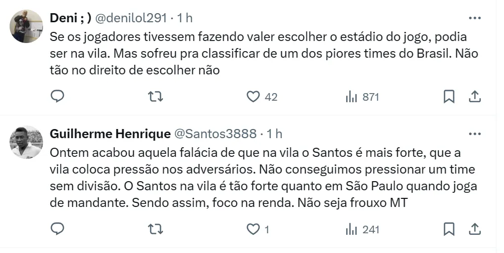 Para as quartas de final, inclusive, o mandatário santista pensou em mandar o jogo contra a Portuguesa na Neo Química Arena, estádio do Corinthians. Teixeira guarda ótima relação com o presidente Augusto Melo.