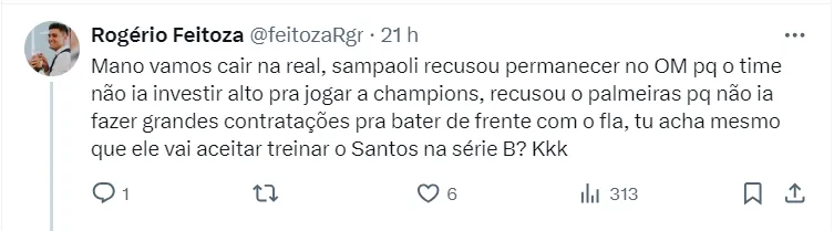 Já que Sampaoli colocou como exigência para que acerte a sua ida para a Vila Belmiro, a garantia que o clube vai buscar fortalecer o elenco e dará uma equipe competitiva para ter condições de brigar sempre na parte de cima da tabela.