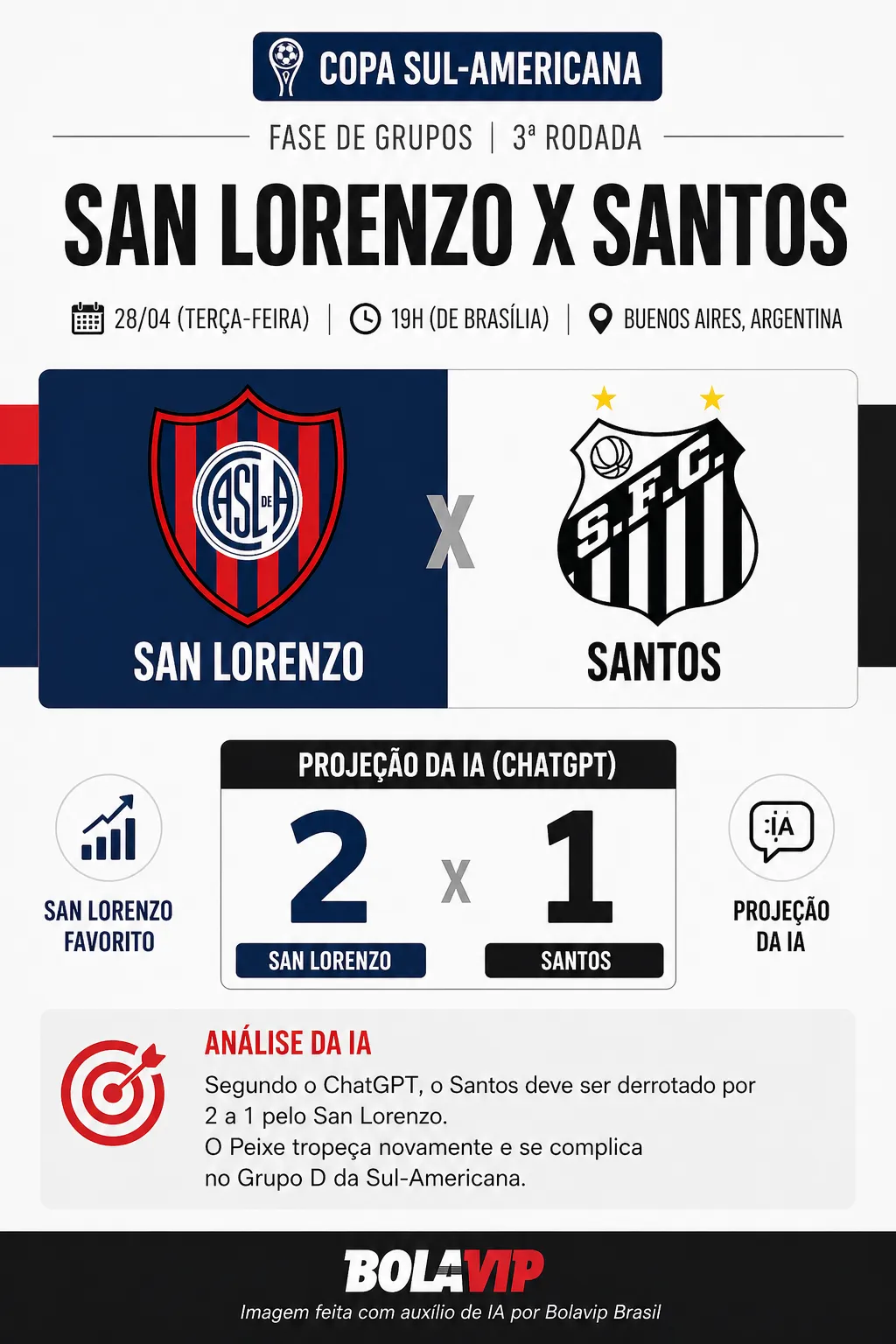 Aproveitando a expectativa para a partida, o Bolavip Brasil recorreu à inteligência artificial para projetar o cenário do confronto. Segundo o ChatGPT, o Alvinegro Praiano deve ser derrotado por 2 a 1, tropeçando novamente e se complicando no Grupo D.