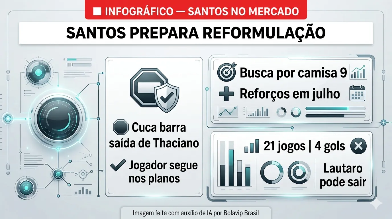 Santos busca contratação de camisa 9, mas Cuca barra saída de Thaciano e atacante é visto como útil
