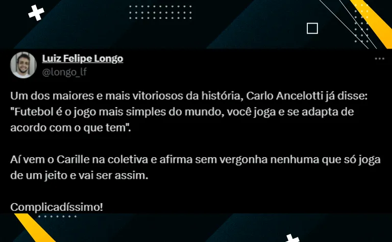 Carille tem uma boa relação com os jogadores e isso é levado em consideração pela diretoria. Os relatos são de que a rotina no dia a dia é saudável e existe um respeito mútuo entre elenco e comissão técnica. Quando houve protestos de organizadas no CT, as lideranças do grupo deixaram claro que estavam fechados com o professor.