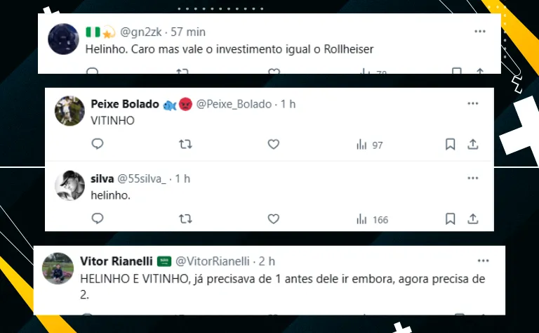 Aliás, outro assunto que repercutiu bastante entre santistas foi o perfil do “substituto” de Soteldo. Como já informado no Bolavip Brasil, o Santos quer um atacante “ponta firme” para o seu lugar, ou seja, alguém que não deixe o clube na mão. Com isso, os santistas repercutiram e pediram alguns nomes (Helinho e Vitinho).