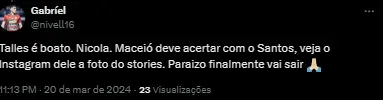 Com isso, o Alvinegro Praiano observa o mercado interno e está de olho em algumas opções para fortalecer o elenco de Fábio Carille. Um dos nomes que está na mira é um jovem que surgiu no Paulistão.