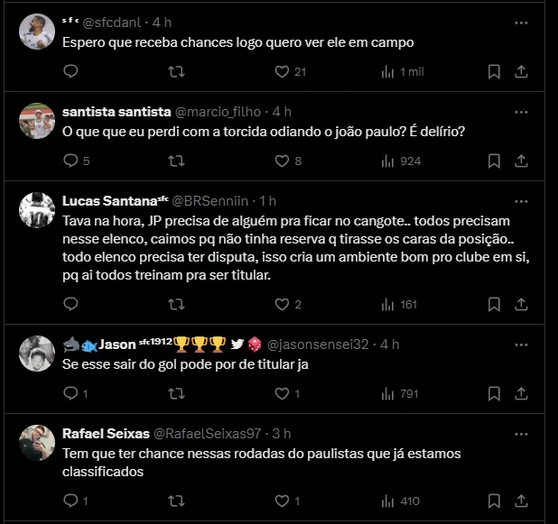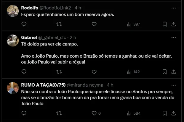 O arqueiro foi anunciado no final de janeiro, ou seja, após Jorge. Entretanto, Gabriel Brazão, que não possui problemas e está à disposição, foi o escolhido pelo Santos.