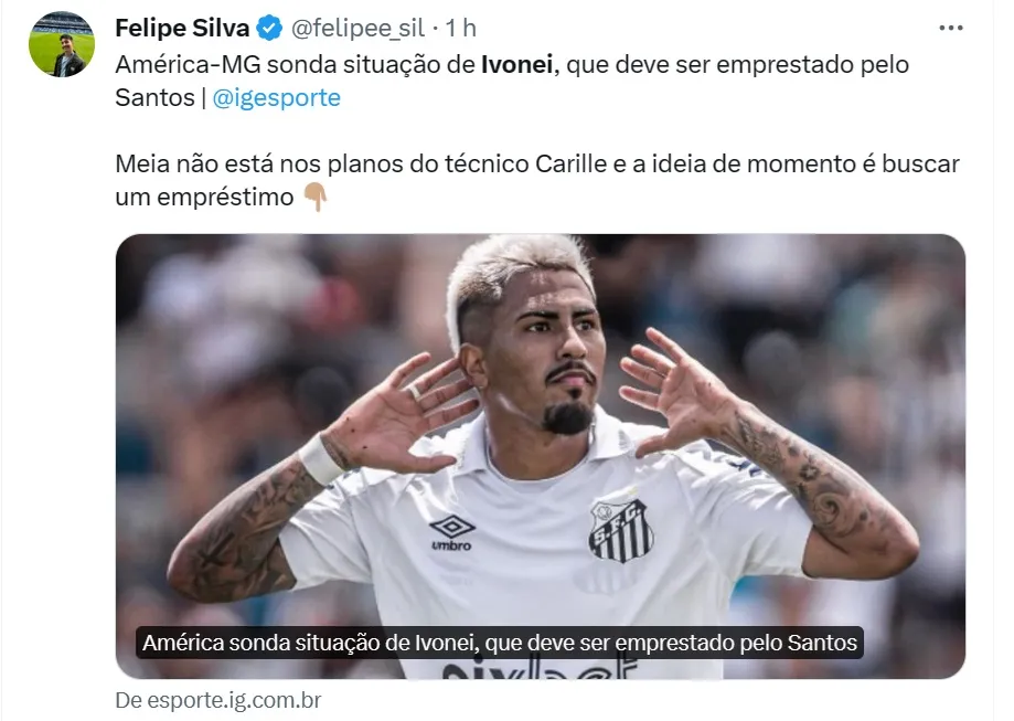 O colega Felipe Silva, do IG Esporte, informa que Ivonei deve ser novamente emprestado pelo Peixe. Em 2023, o meio-campista de 21 anos atuou pelo Botafogo-SP ao longo da Série B.