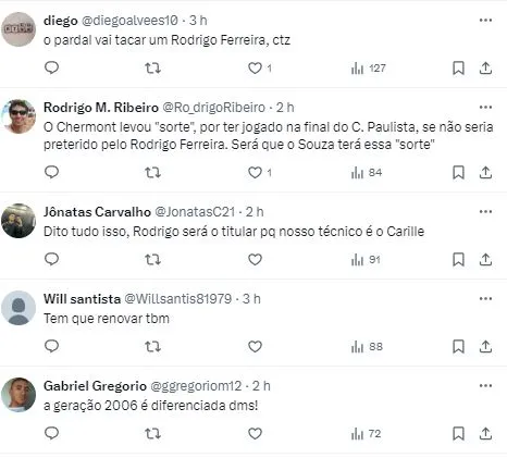 Agora, o técnico Fábio Carille analisa a disputa para definir quem será o substituto para o setor. Rodrigo Ferreira e JP Chermont são os concorrentes, mas Hayner também pode ser acionado no setor direito, já que é sua posição de ofício, embora tenha ocupado a vaga aberta por Felipe Jonatan, que recentemente deixou o Peixe.