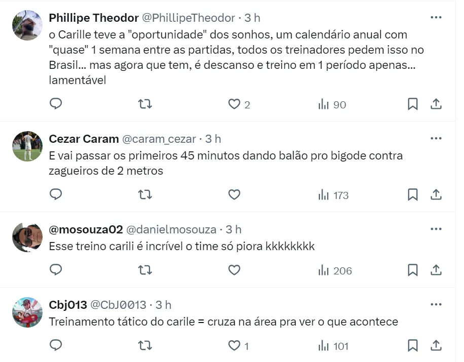 Mesmo com Carille balançando no cargo, o time santista treina em apenas um período, de acordo com Fábio Sormani. O treinador fez um treino tático nesta segunda-feira (17) e lances de bola parada.