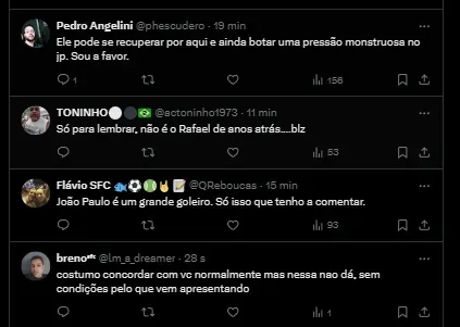 Vale destacar que o Clube tem João Paulo como goleiro, mas o titular não vem convencendo 100%. Apesar de desejar seguir na Vila Belmiro, ele pode ganhar uma sombra no elenco.