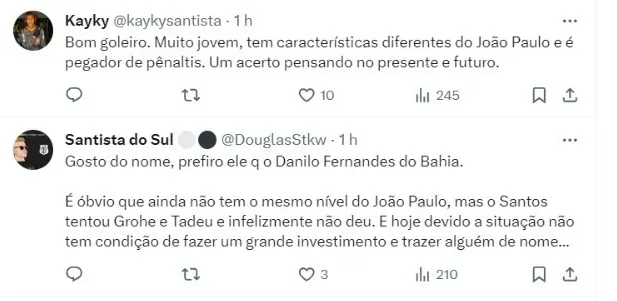 “Hoje (domingo) o Marcelo Grohe me ligou na viagem, vindo para cá (Santos). Era o primeiro nome nosso para se juntar aqui com nossos goleiros. Mas, infelizmente, mudaram as leis na Arábia. Como o Ittihad está na Champions, não é obrigado tirar um estrangeiro para colocar outro”, disse Carille.