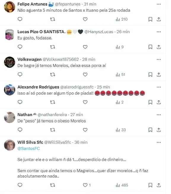 Diretoria do Santos trabalha com o nome de Alexandre Pato como possibilidade para a temporada de 2024. Os moldes da negociação não foram informados, mas tem o aval do técnico Fábio Carille. Exames devem ser feitos para avaliar as condições físicas de Pato antes de avanço“, escreveu Caique Silva.