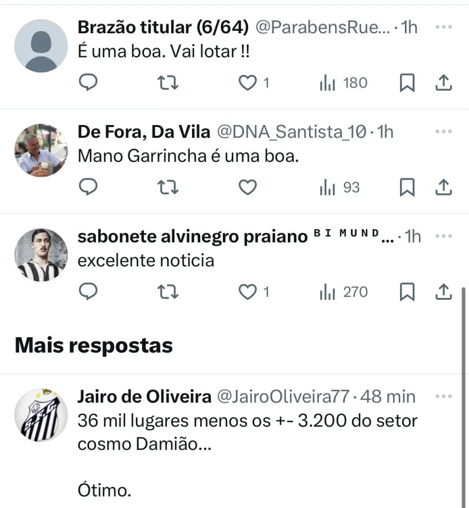 Já para as próximas rodadas, onde poderá ter o público de volta, o Santos quer apostar na força do torcedor de fora da cidade litorânea para dar mais chance do torcedor santista que mora no interior, em São Paulo ou fora do estado em ver os jogos do time do coração.