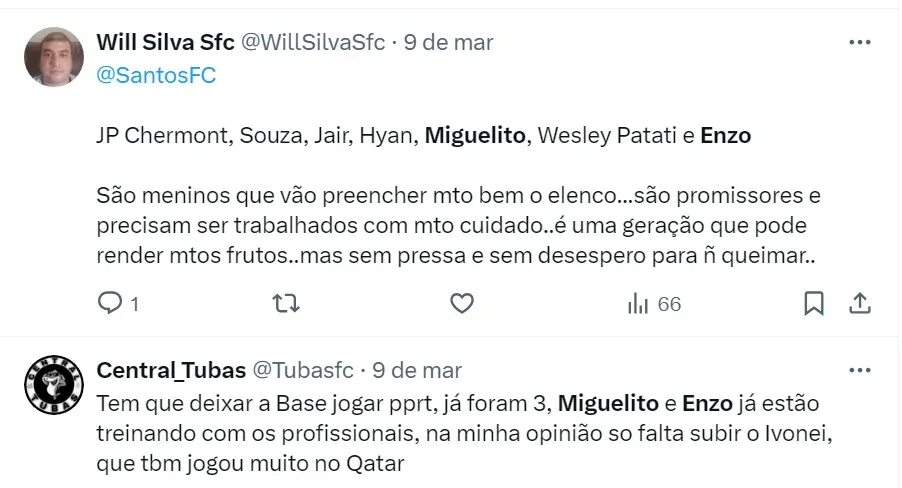 Já em relação aos Meninos da Vila, o Alvinegro Praiano colocou na lista B da competição o meia Miguelito, o atacante Enzo e o zagueiro Matheus Matias, como informou o De Olho no Peixe em sua conta no X (antigo Twitter).