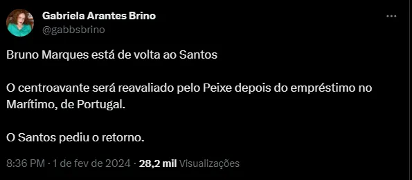 Trata-se de Bruno Marques, jogador que pertencia ao Peixe, mas estava emprestado ao Marítimo, de Portugal. O clube português devolveu o jogador após pedido do próprio Santos.