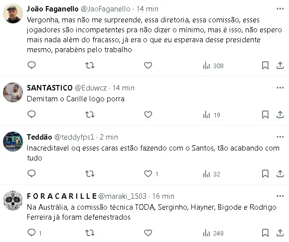 A equipe santista demonstrou falta de inspiração, colocando em xeque o trabalho do técnico Fábio Carille, cujo cargo pode estar em risco diante da sequência negativa.