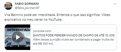 De acordo com informações trazidas pelo jornalista e comentarista Fábio Sormani, o Alvinegro Praiano pode perder alguns mandos de campo na Vila Belmiro, durante partidas da Segunda Divisão do Futebol Nacional.