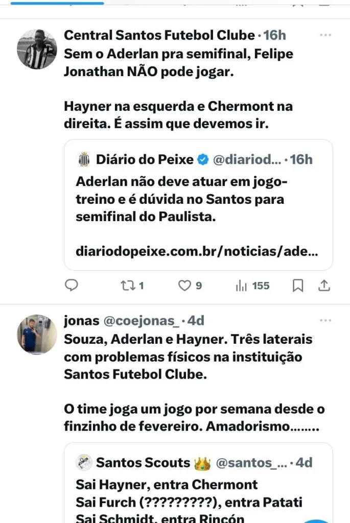 “Casa cheia com certeza vai estar porque a torcida do Santos é… Não dá para falar essa palavra (risos). Acredito que seja casa cheia. Independente do lugar que a gente jogar, vamos estar preparados e fazer um bom trabalho.Sempre bom ter um jogo-treino assim, pois aumenta bastante o nível de preparação, já que a equipe deles é bem qualificada também”, disse o defensor em entrevista ao site oficial do Clube.