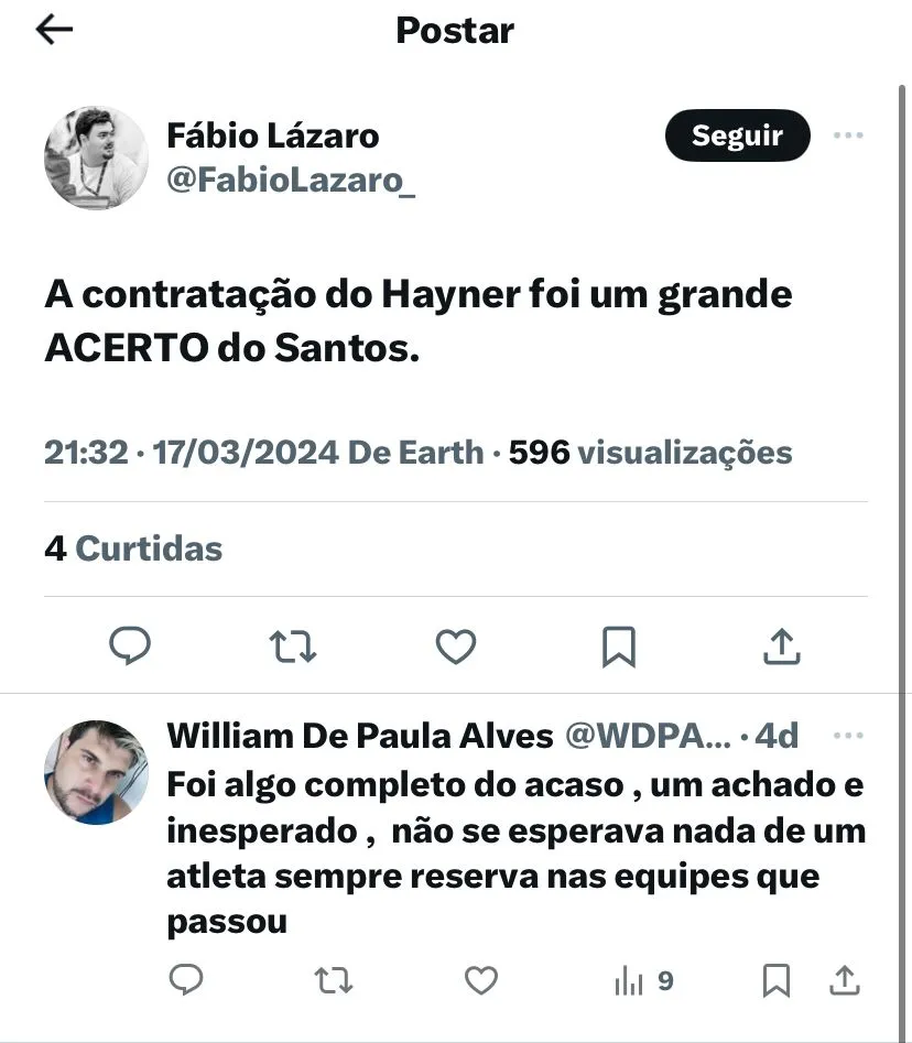 O Alvinegro Praiano também está encaminhando mais uma contratação para a Série B, além disso, com a chegada de Rodrigo Ferreira, que atua como lateral-direito, é possível que Fábio Carille fixe Hayner como uma opção para a esquerda. Ainda em entrevista, o jogador também falou sobre essa provável tomada de atitude do comandante.