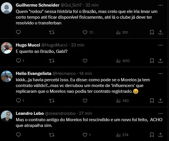 “O transferban impede novas inscrições e contratos. Como Morelos já estava no clube, a situação dele é mais fácil de ser resolvida. O Peixe está confiante para resolver entre hoje e amanhã“, disse a jornalista, no Twitter.