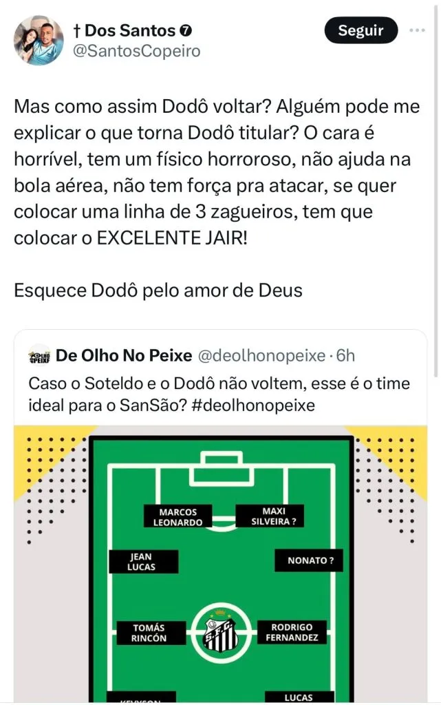 Santistas reagem a possível ausência de Dodô