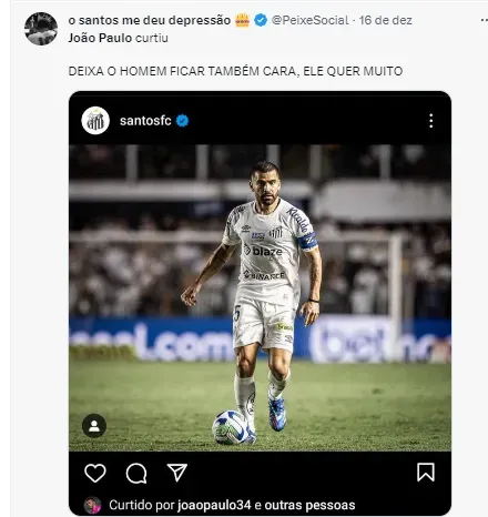 Porém, como já foi trazido pelo Bolavip Brasil, João Paulo teria sinalizado nos bastidores da Vila Belmiro que desejaria seguir no Santos e estaria aguardando uma conversa com o novo presidente Marcelo Teixeira.