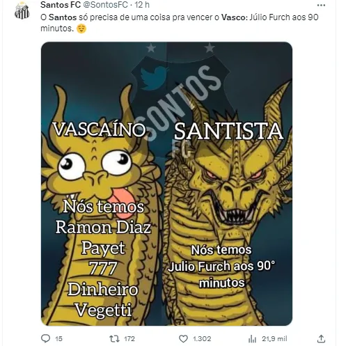 Diferente do rival carioca, o Alvinegro Praiano segue na zona de rebaixamento. Atualmente, o Peixe ocupa a 18° lugar, com 24 pontos, ficando atrás do Bahia e na frente apenas de América-MG e Coritiba. Falando no Clube Baiano, o Leão do Mar conseguiu uma importante vitória na última rodada do Brasileirão, ao vencer em Salvador, por 2 a 1. Ainda assim, o momento atual santista é muito perigoso.
