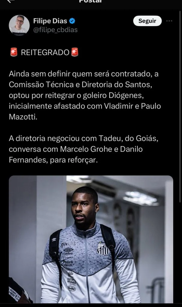Buscando se reforçar ainda mais em 2024, o Peixe está em busca de um goleiro para o elenco de Fábio Carille. Visando o Paulistão e a Série B, o time busca reforçar ainda mais sua defesa.
