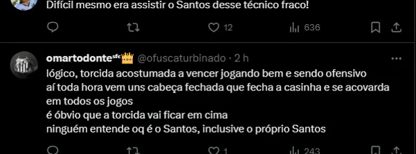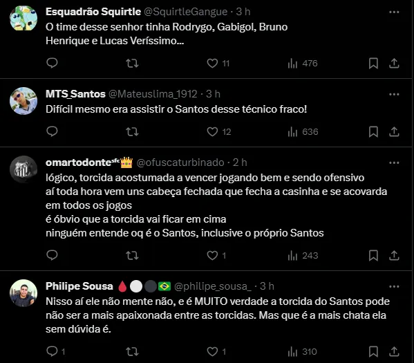 “O Andrés (ex-presidente do Corinthians) blindava a gente. No Corinthians você sente a pressão na rua, com motorista, com entregador de delivery, mas no clube era tudo fácil de conviver. Já no Santos…”, comparou.