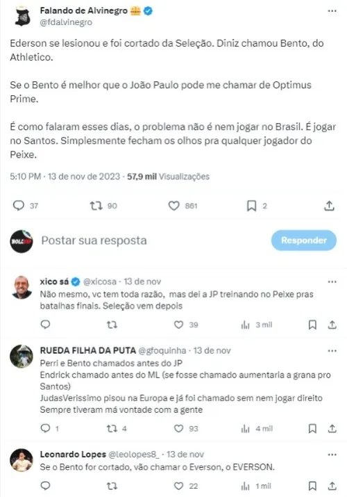 Desta vez, quem acabou convocado por Bento, do Athletico-PR, que é considerado muito promissor, mas que não vive uma fase boa, tanto que falhou bisonhamente na derrota dos paranaenses diante do Corinthians.