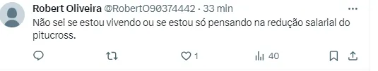 “Pituca deve ter definição em janeiro, no início do mandato do MT. As conversas pela redução salarial aconteceram e devem acabar bem”, disse a profissional em seu Twitter ao responder um de seus seguidores.