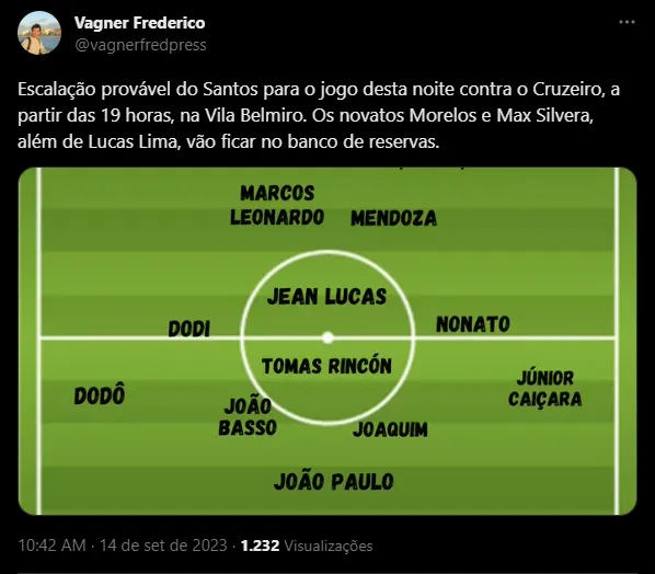 Posto isso, com mais de 11 mil ingressos vendidos para esta quinta-feira (14), vale ressaltar que Aguirre terá um desfalque importante, que esteve presente no último triunfo do Peixe sobre a Raposa, em 2019. Trata-se Yeferson Soteldo. O venezuelano foi expulso contra o Coelho e não poderá enfrentar a Raposa após a Data FIFA.