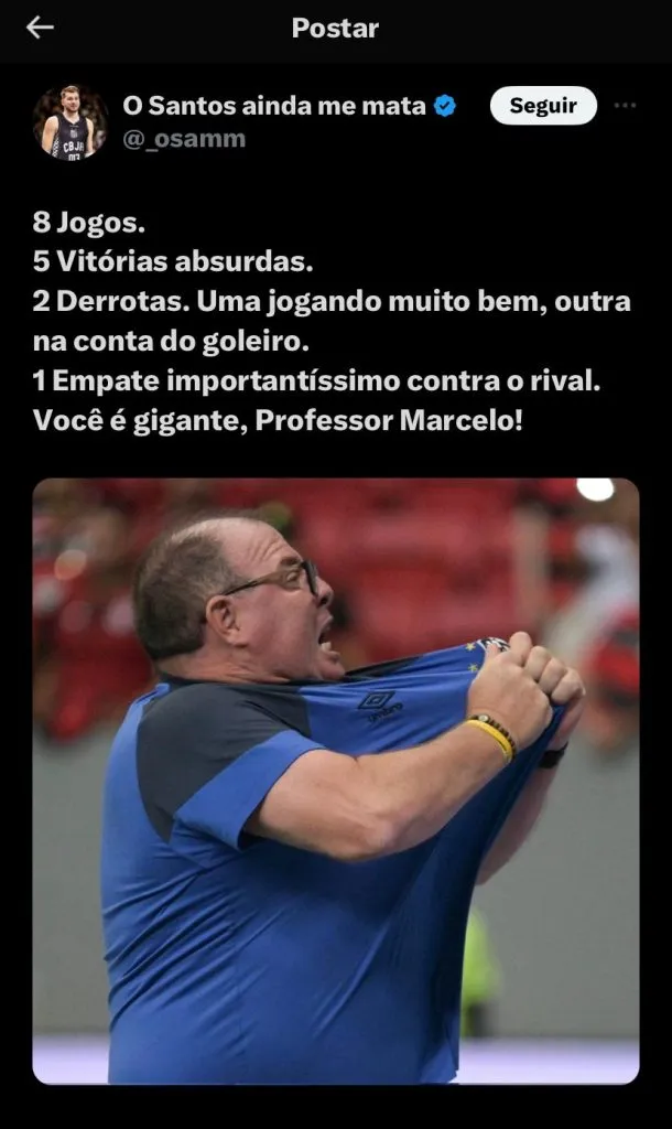 “E o espelho para essa partida foi o jogo contra o Palmeiras. Sabíamos que íamos enfrentar uma grande equipe, ser pressionados, mas jogamos bem. Toda vez que mostraram intensidade e essa baita vontade, buscamos o resultado”, finalizou Marcelo Fernandes.