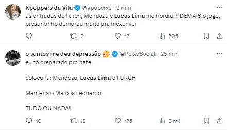 Entretanto, Marcelo Fernandes não entrou logo o que desejavam os alvinegros. Dois nomes muito citados de início foram o de Lucas Lima e Stiven Mendoza. O atacante colombiano, inclusive, era cotado para começar o jogo.