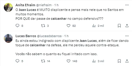Sofrimento desnecessário, olha o que o Jean Lucas fez: Torcida do Santos se irrita por 3 motivos