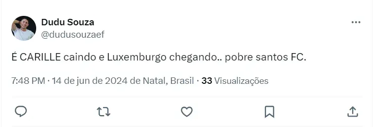 Desta forma, com a expectativa de que o comandante não permaneça na equipe por muito tempo, se o desempenho continuar dessa forma. Com isso, a torcida acredita que o substituto escolhido pela diretoria, que seria o ideal no Peixe, é Vanderlei Luxemburgo.