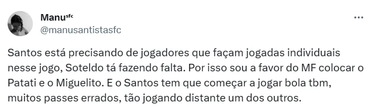 No momento, o Santos é o 14º colocado da competição nacional, com 42 pontos conquistados. O próximo compromisso santista, aliás, será contra o Botafogo, que briga para reassumir a liderança do Brasileirão.