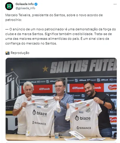 “O anúncio de um novo patrocinador é uma demonstração da força do clube e da marca Santos. Significa também credibilidade. Trata-se de uma das maiores empresas alimentícias do país. É um sinal claro da confiança do mercado no Santos”, confirmou Marcelo Teixeira.