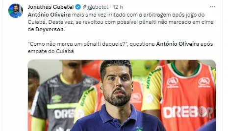 “Eu gostaria que alguém me justificasse isso. Acabo depois por passar a imagem que estou de ‘mimimi’. Aquilo é pênalti em Portugal, na China, em Bangladesh, na Antártida, em Marte. Acabaram de prejudicar um clube, uma cidade, um estado que também merece respeito e que também tem os seus torcedores. Hoje o Cuiabá não foi respeitado”, encerrou António Oliveira.