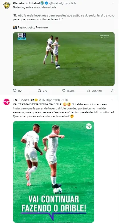 Soteldo, principal personagem da polêmica, usou suas redes sociais para se pronunciar sobre o caso. O problema que gerou muita repercussão foi que o próprio treinador do Alvinegro Praiano Marcelo Fernandes deixou claro que o ato não iria se repetir e ele já havia conversado com o camisa 10 venezuelano. Porém, em suas redes sociais, o meia afirmou que vai fazer de novo.