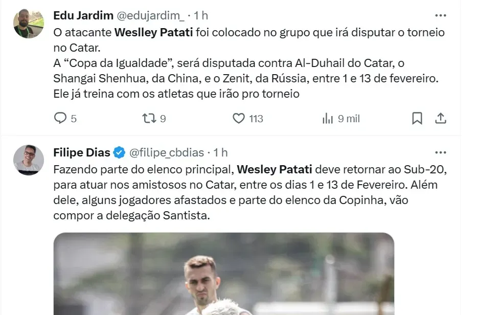 Já Patati, que não havia sido relacionado por Carille para jogo contra o Botafogo-SP na estreia do Campeonato Paulista, será ‘rebaixado’ novamente ao time Sub-20 do Alvinegro.