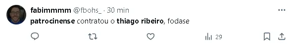 Thiago Ribeiro, ex-Santos, é anunciado pelo Patrocinense