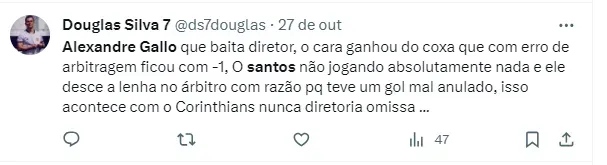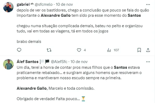 Acontece que o coordenador técnico do Clube Paulista, Alexandre Gallo, acabou sendo fundamental para o Santos não deixar a goleada sofrida atrapalhar os planos e abalar o elenco e a comissão técnica. Vale lembrar que o dirigente não tem presença assegurada em 2024.