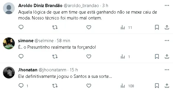 Além do resultado, a partida foi marcada por críticas da torcida do Santos ao técnico Marcelo Fernandes, principalmente devido às substituições de Soteldo e Jean Lucas.