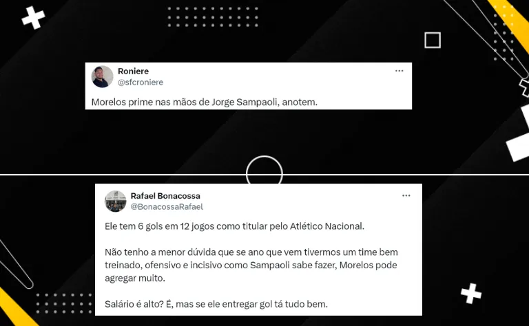 “Não tenho a menor dúvida que se ano que vem tivermos um time bem treinado, ofensivo e incisivo como Sampaoli sabe fazer, Morelos pode agregar muito. Salário é alto? É, mas se ele entregar gol tá tudo bem”, disse um torcedor na web.