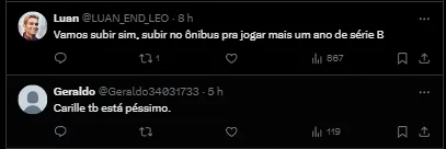 “Diferente do jogo contra o Amazonas, o time teve atitude, criamos oportunidades. Infelizmente, não fez o gol. E precisava ter um pouco mais de atenção nos gols tomados”, analisou Carille.